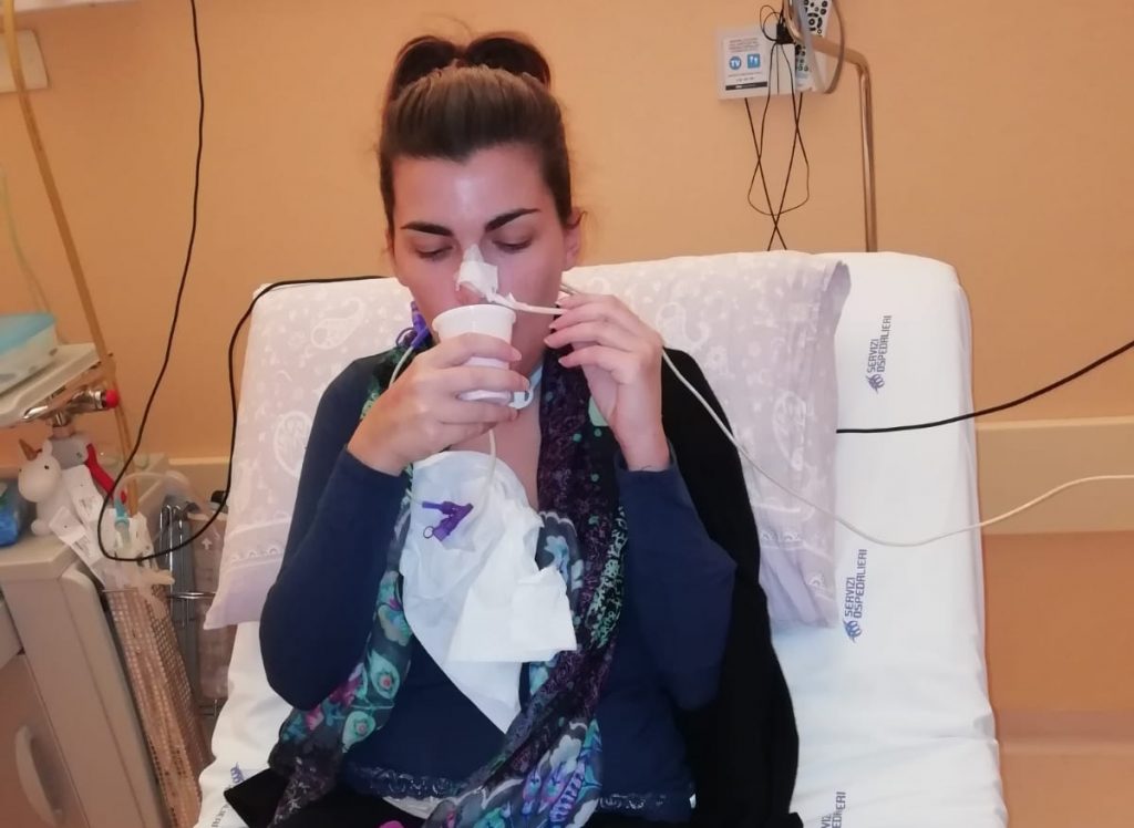 Ultima foto prima di togliere il sondino e prima foto di me che tento di “mangiare” uno yogurt diluito con acqua.
